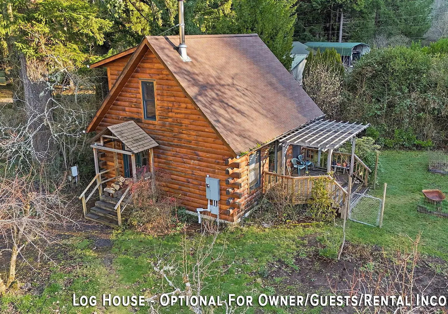 | Exterior: | Log, Cement Siding, Wood Siding |