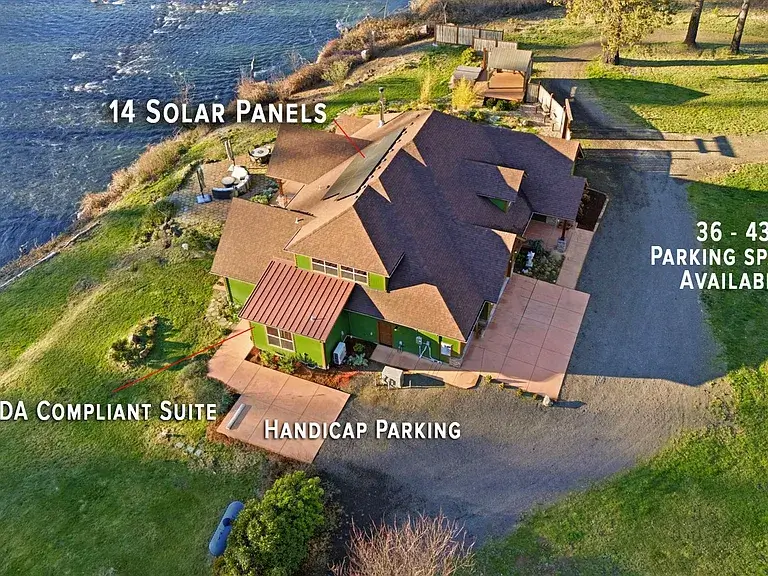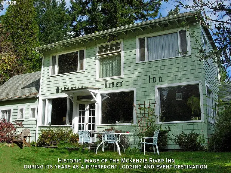 Treasured Riverfront Site of the historic MCKENZIE RIVER INN, rebuilt in 2021. Entertaining Entrepreneurs – Invest in your dream to own & operate a Custom Residential Inn with sweeping views of the McKenzie River, located in the HEART OF DRIFT BOAT FLY-FISHING and within 10 min drive to WORLD-CLASS GOLF. Floor-to-ceiling windows fill the Great Room and COMMERCIAL KITCHEN, a WINE CELLAR and intimate tasting room create a warm setting for relaxed entertaining. THREE RIVER-VIEW SUITES offer hotel-level comfort with patio access, a large upper-level room provides flexible space for an office, studio, workshop, or additional sleeping area. Expansive grounds with natural southern light along 385’ OF MCKENZIE RIVERFRONT. Guests unwind in the JAPANESE GARDEN, Tea House, and JACUZZI while enjoying tranquil river views. A charming LOG CABIN with full kitchen, 1B /1.5B is well suited for an owner, caretaker, or host. COMMERCIAL ZONING provides exceptional flexibility, offering excellent potential for Additional River-View Cabins, (2-story designs could provide more units), supporting retreats, events, or short-term rental use) buyers to confirm all plans w/ LCLM. While planning future development, immediate options provide short-term RV & CAMPING SITES. Ideal for lodging tourists, hosting event gatherings, welcoming RV guests, or operating a retail shop or café—this is a true EVENT VENUE opportunity, perfect for weddings, anniversaries, celebrations, outdoor concerts, and more. BLM forestland views provide approximately 90° MORE DAYLIGHT across the property. Business name, website & email included, furnishings negotiable—A LEGACY OPPORTUNITY. Local organizations actively support McKenzie River businesses & events, enhancing long-term success. Contact Broker for more details and Schedule A Private Tour.
